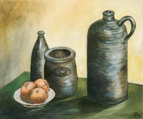Stilleben mit Apfelsinen und Tongefäß